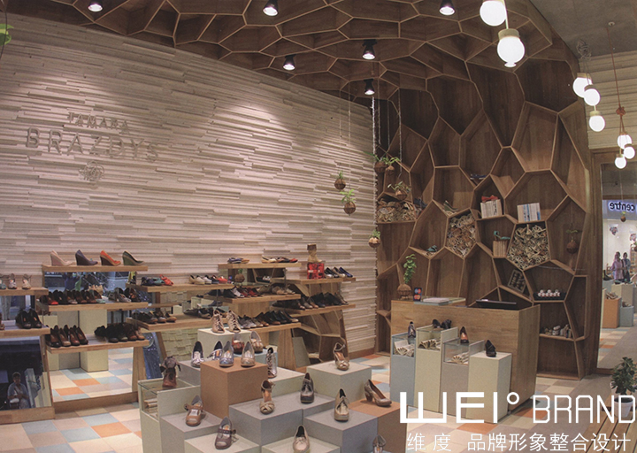 文艺范绝对是广大对生活讲究的姑娘,毕生的追求,蜂窝形天花和柜台背景设计,淡粉色的展示台显得颜色也不那么单调,暖暖灯光设计让整个店铺氛围变得清新脱俗。